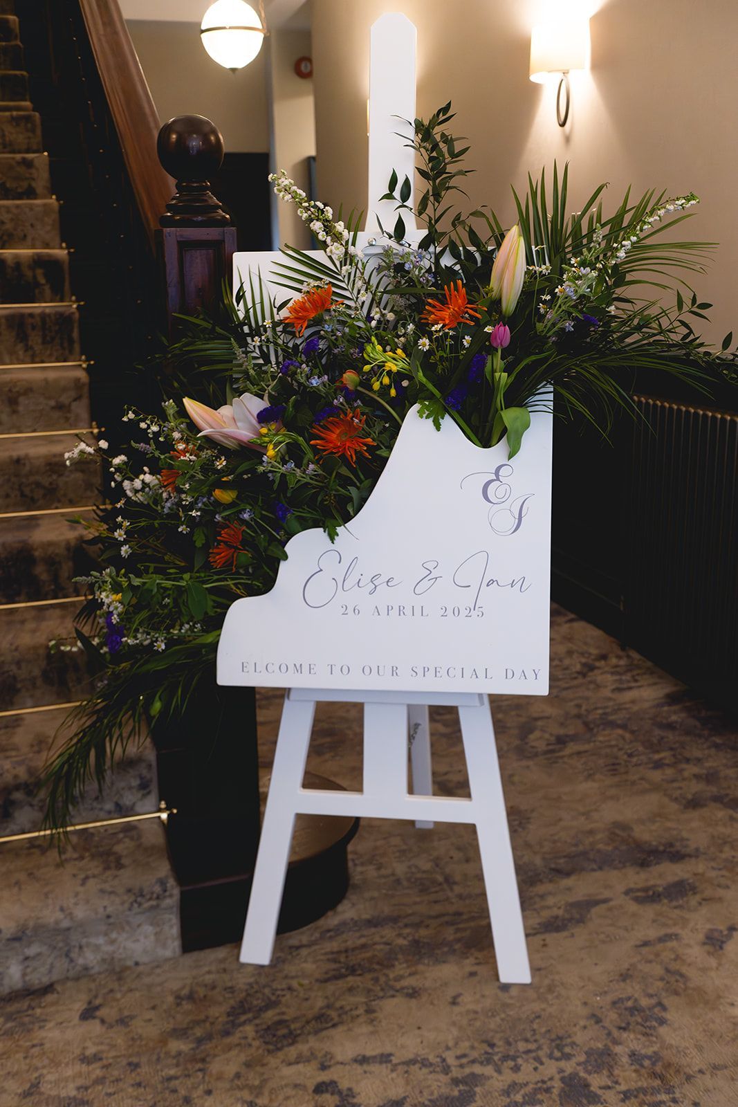 Available are different designs of welcome boards and arches enhanced with your favorite flowers add another beautiful way to welcome your guests.